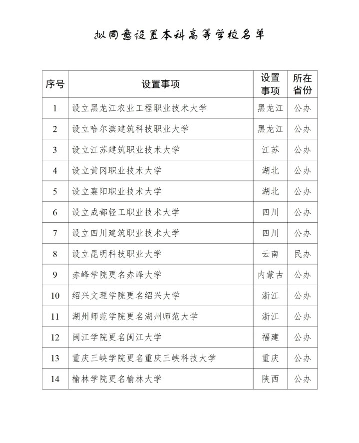 再次祝贺1月12日获得教育部公示的六所学院类高校,它们今年挂牌也没什么太大问题了。