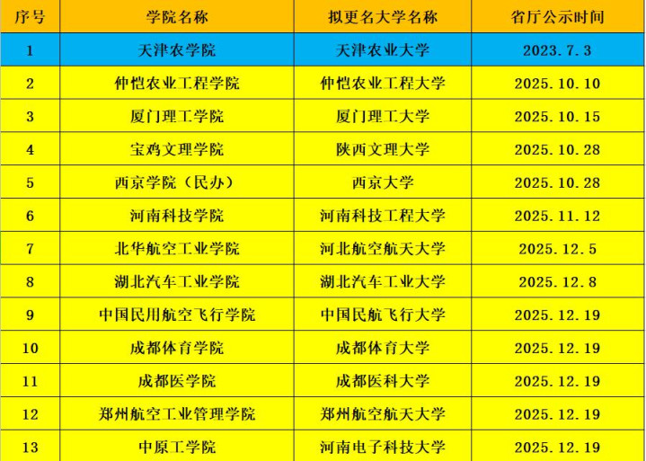 那么除了这几所学院类高校,还有那些已经通过省厅更名公示但还没有获得教育部公示的高校呢: